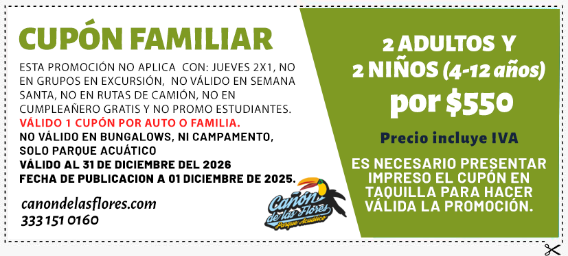 ESTA PROMOCIÓN NO APLICA CON: JUEVES 2X1, NO EN GRUPOS DE EXCURSIÓN, NO CÓDIGO POSTAL, NO VALIDO EN SEMANA SANTA, NO EN RUTAS DE CAMIÓN, NO EN UBER, TAXI O DIDI, NO EN CUMPLEAÑERO GRATIS, NO PROMO ESTUDIANTES, VALIDO 1 CUPON POR FAMILIA.